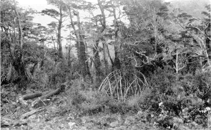 Gerüst eines Hauses der Halakwulup (M. Gusinde)