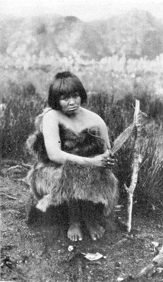 Junge Halakwulupfrau beim Spinnen